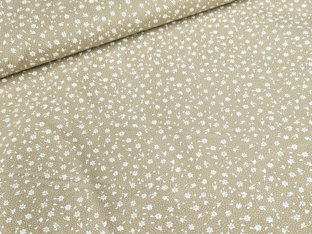 Bavlněné plátno - Drobné kvítky na světle hnědéSkladem 8.5 m130 Kč/ m107 Kč bez DPH