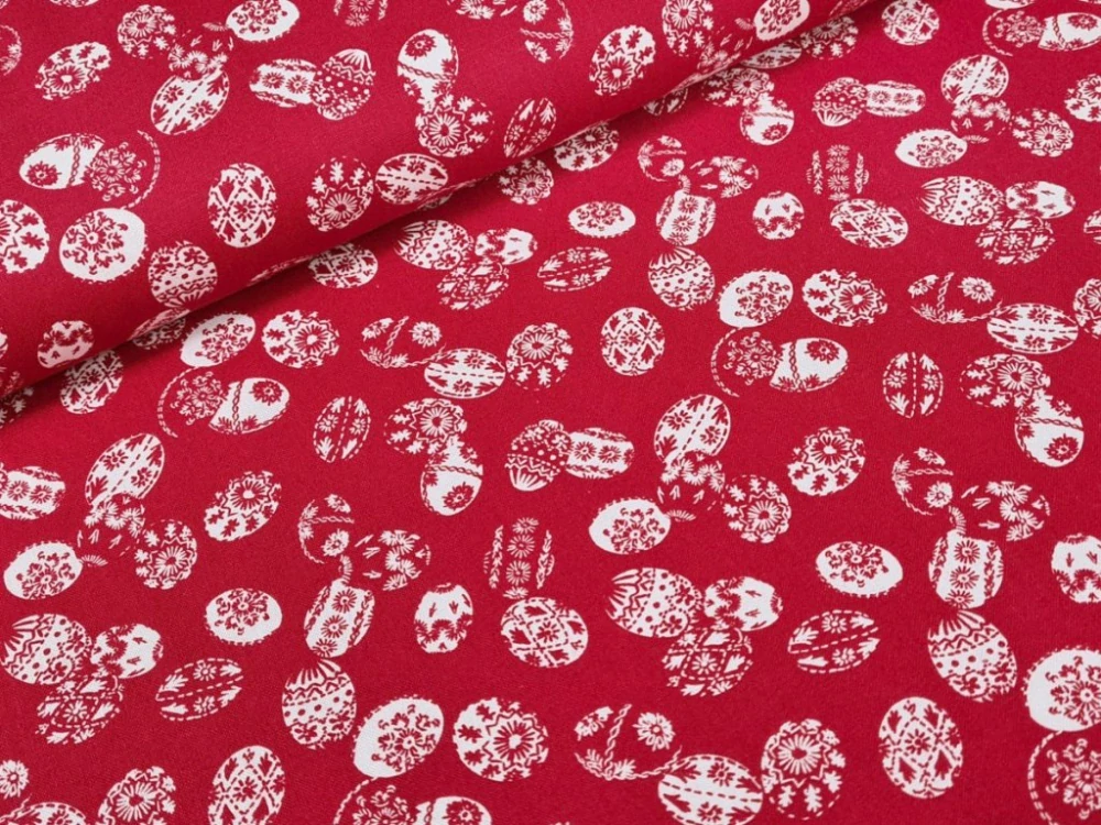 Bavlněné plátno - Kraslice na tmavě červené