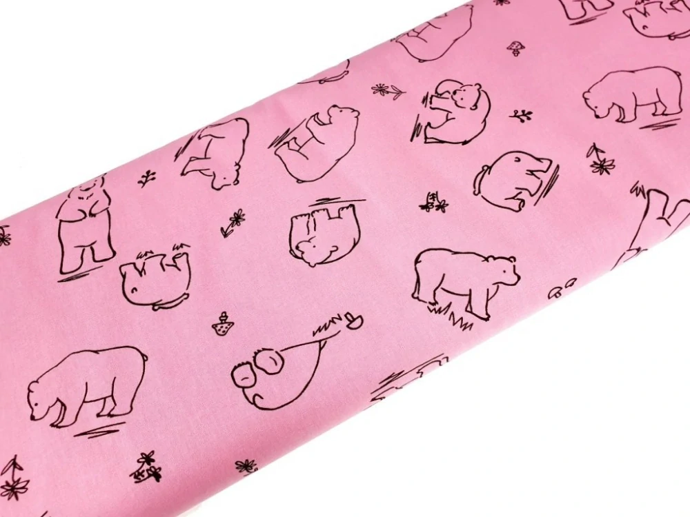 Bavlněné plátno - Medvědi černí na růžovéSkladem 1.3 m85 Kč/ m70 Kč bez DPH