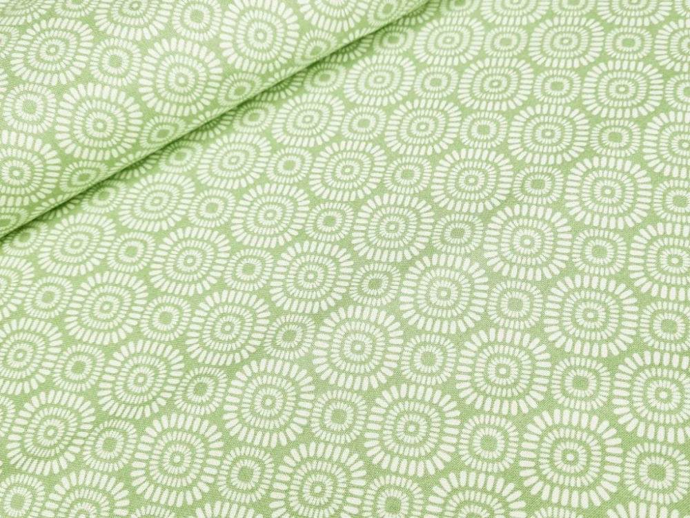 Bavlněné plátno - Ornamenty pastelově zelené na krémově bílé