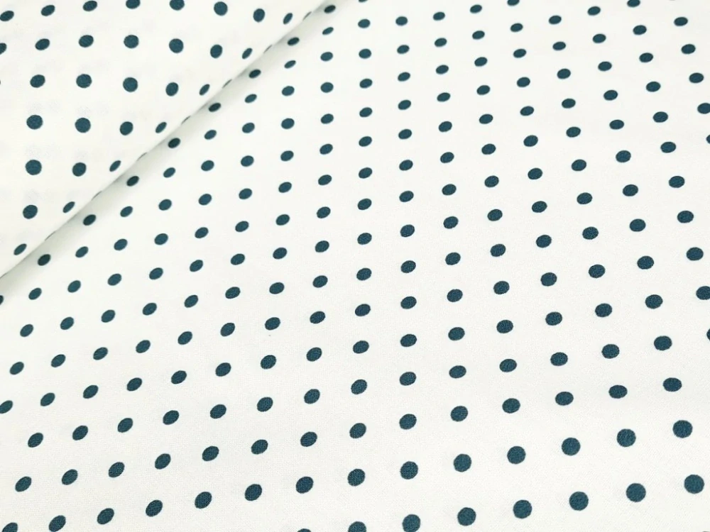 Bavlněné plátno - Puntík petrolejový 4 mm na krémově bíléSkladem 12 m90 Kč/ m74 Kč bez DPH