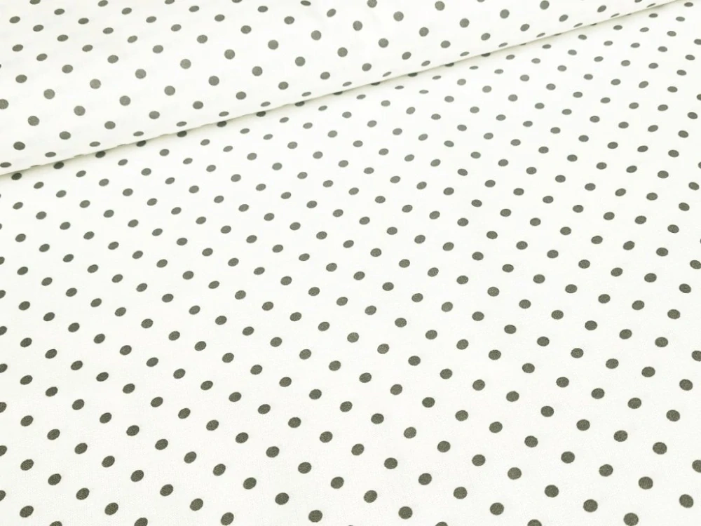 Bavlněné plátno - Puntík tm. šedý 4 mm na krémově bíléSkladem 14.4 m90 Kč/ m74 Kč bez DPH