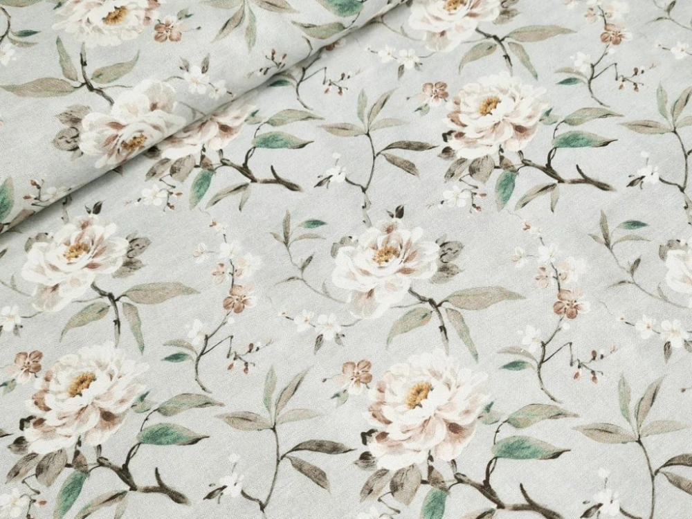 Bavlněné plátno - Růže na šedéSkladem 15 m120 Kč/ m99 Kč bez DPH