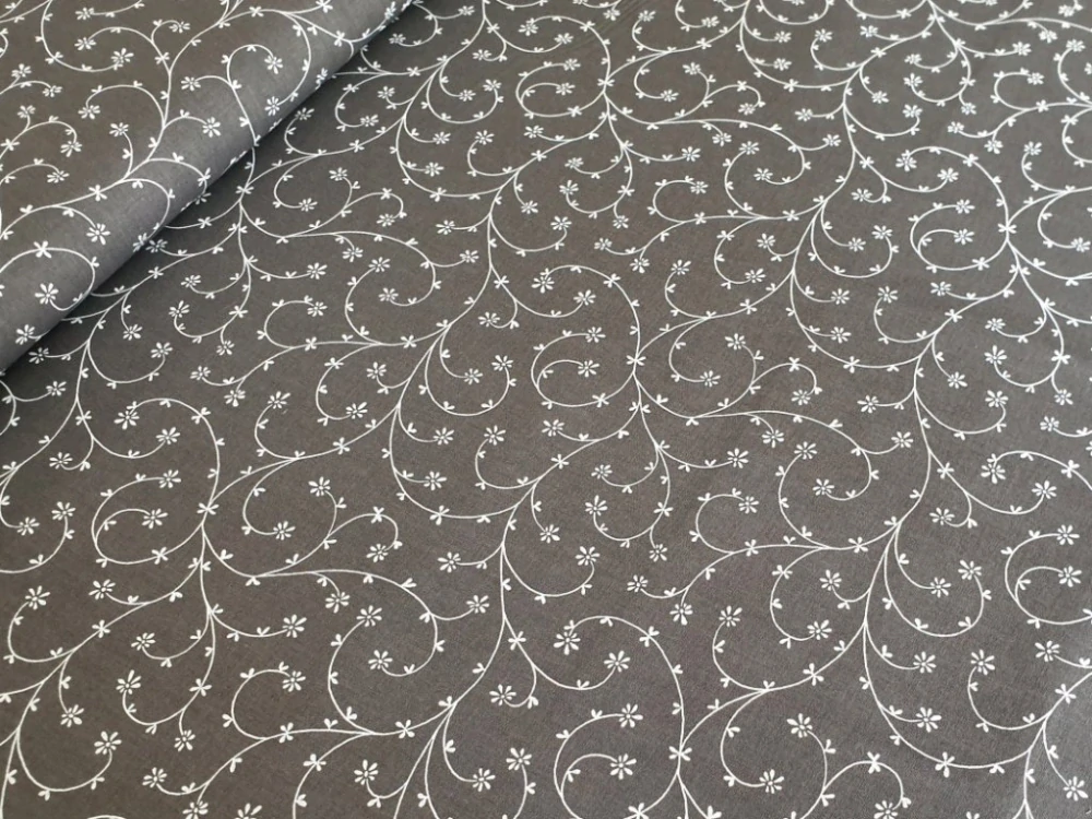 Bavlněné plátno - Větvičky na tmavě šedéSkladem 4.5 m110 Kč/ m91 Kč bez DPH