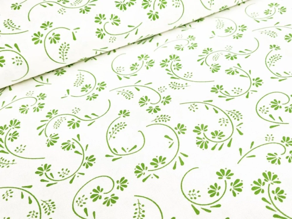 Bavlněné plátno - Zelené větvičky na bíléSkladem 8.2 m105 Kč/ m87 Kč bez DPH