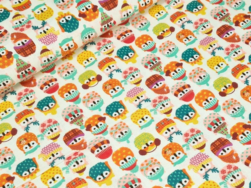 Bavlněné plátno - Zimní sovičky na smetanovéSkladem 8.4 m105 Kč/ m87 Kč bez DPH