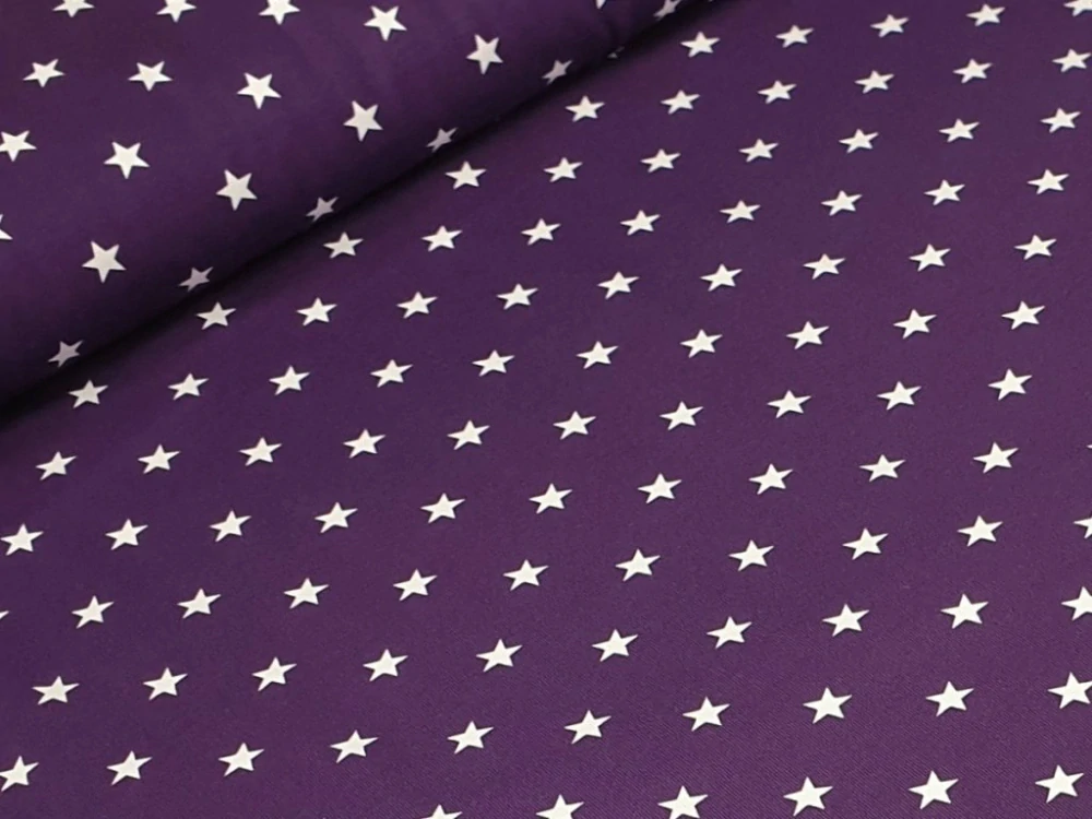 Jednolícní elastický úplet - Hvězdičky na fialovéSkladem 6.2 m175 Kč/ m145 Kč bez DPH