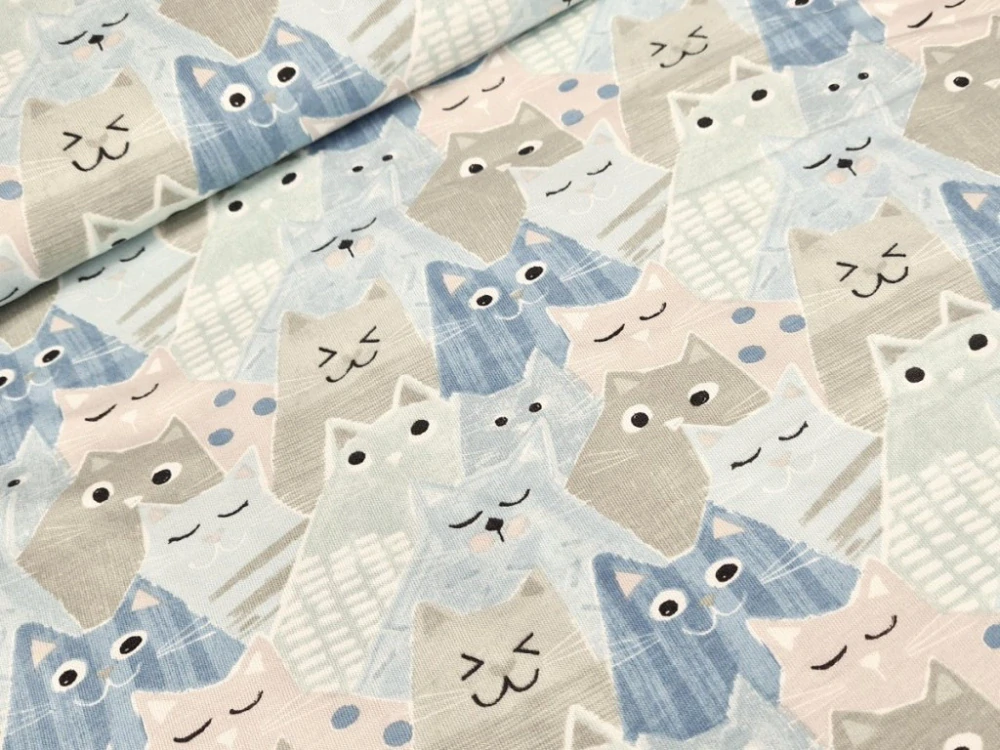 Jednolícní elastický úplet - Kočky v řadách modré